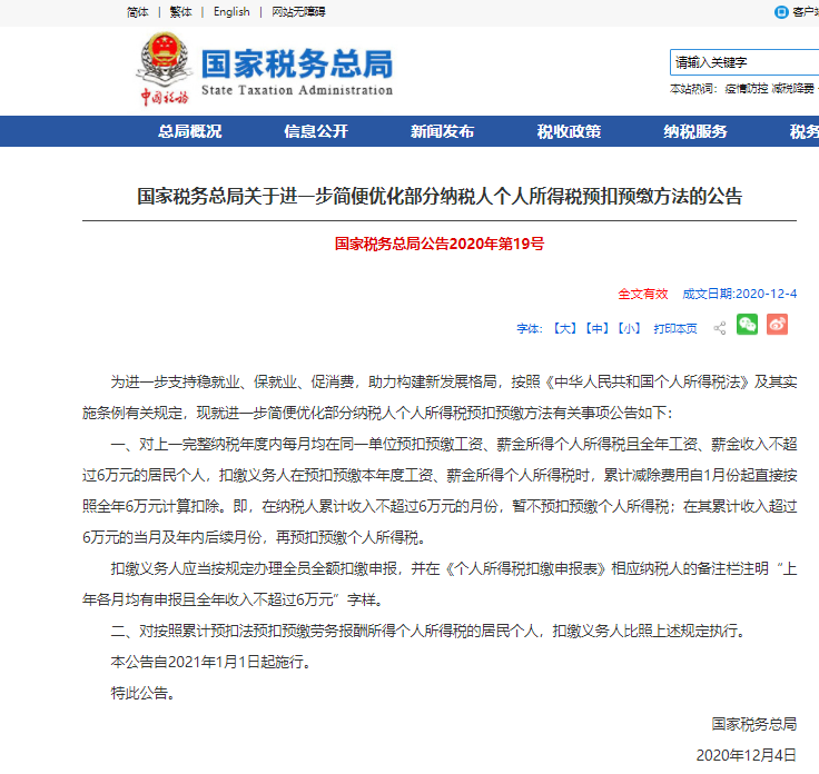 一、个税预扣预缴方法变了!部分年累计收入不足6万的人到手工资变多!