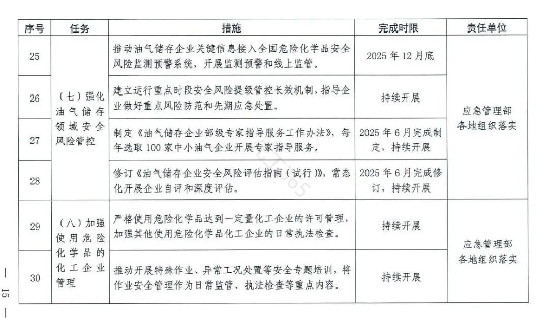 2025年6月修订《油气储存企业安全风险评估指南》,每年开展100家中小油气企业专家指导。